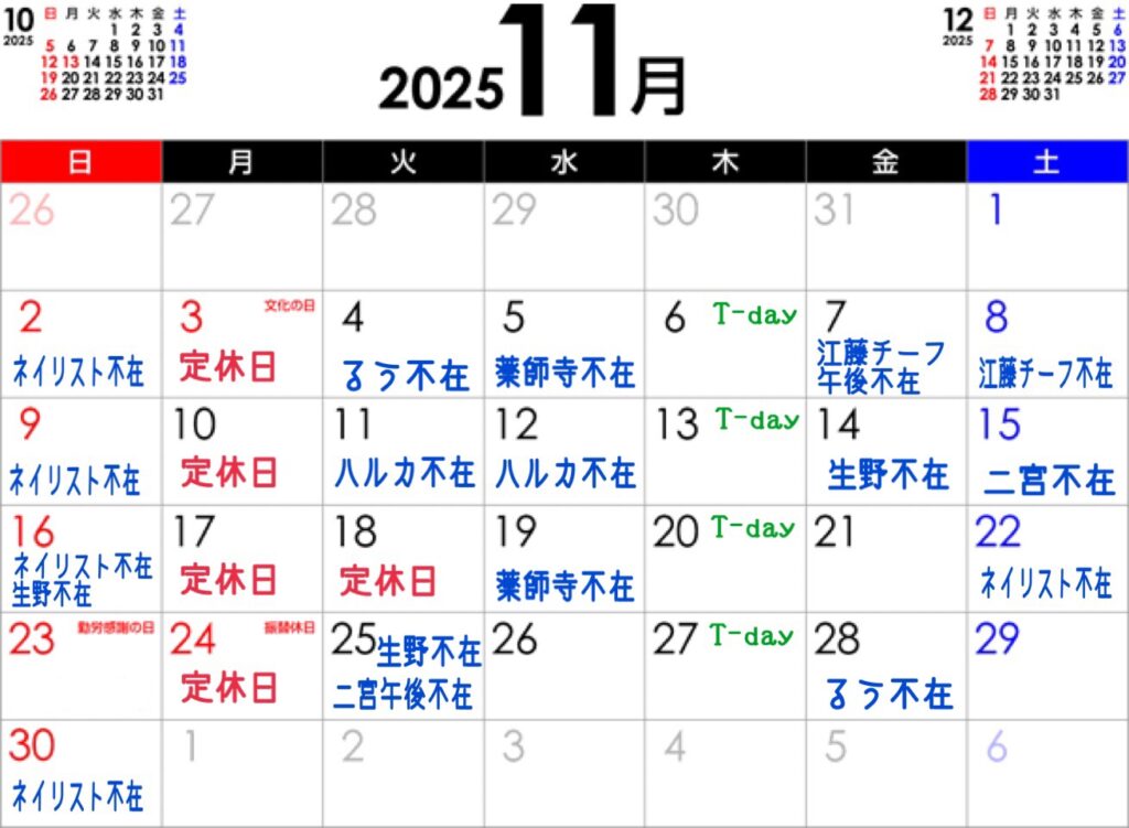 11月のカレンダーです!